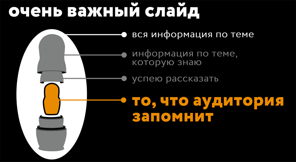 «В хорошей презентации должно быть 4 блока: цель, структурированная информация, история и визуализация. Помните, что презентация измеряется не в слайдах, а в минутах. На один перегруженный слайд человек может потратить намного больше времени, чем если бы этот же объем информации был объяснен на нескольких слайдах». Алеся Селиванова