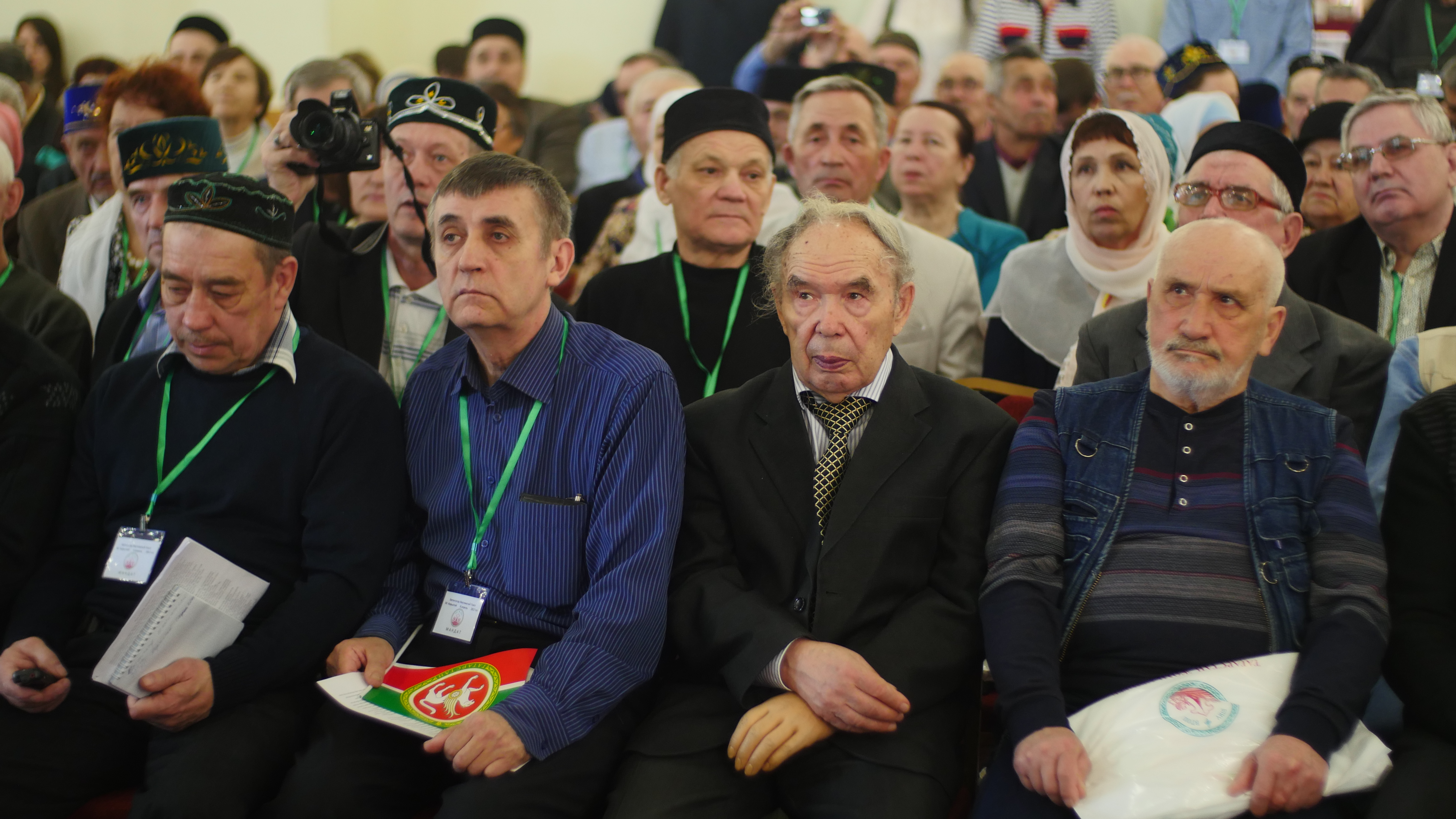 Фойе гостиницы встречает участников курултая портретом Гаяза Исхаки, флагами Татарстана и Идель-Урала. Мужчины в тюбетейках поздравляют друг друга с этим знаковым для них событием, беседуют о политике: "Президента Татарстана тоже могут снять с должности. В соседних республиках глав меняют, до нас тоже могут дойти". Кого-то больше интересует, кто станет новым председателем Татарского общественного центра. Уйдет ли с поста Фарит Закиев или нет? Сместит ли его активист национального движения Айрат Хатмулла? (В результате Фарит Закиев был переизбран – ред.)