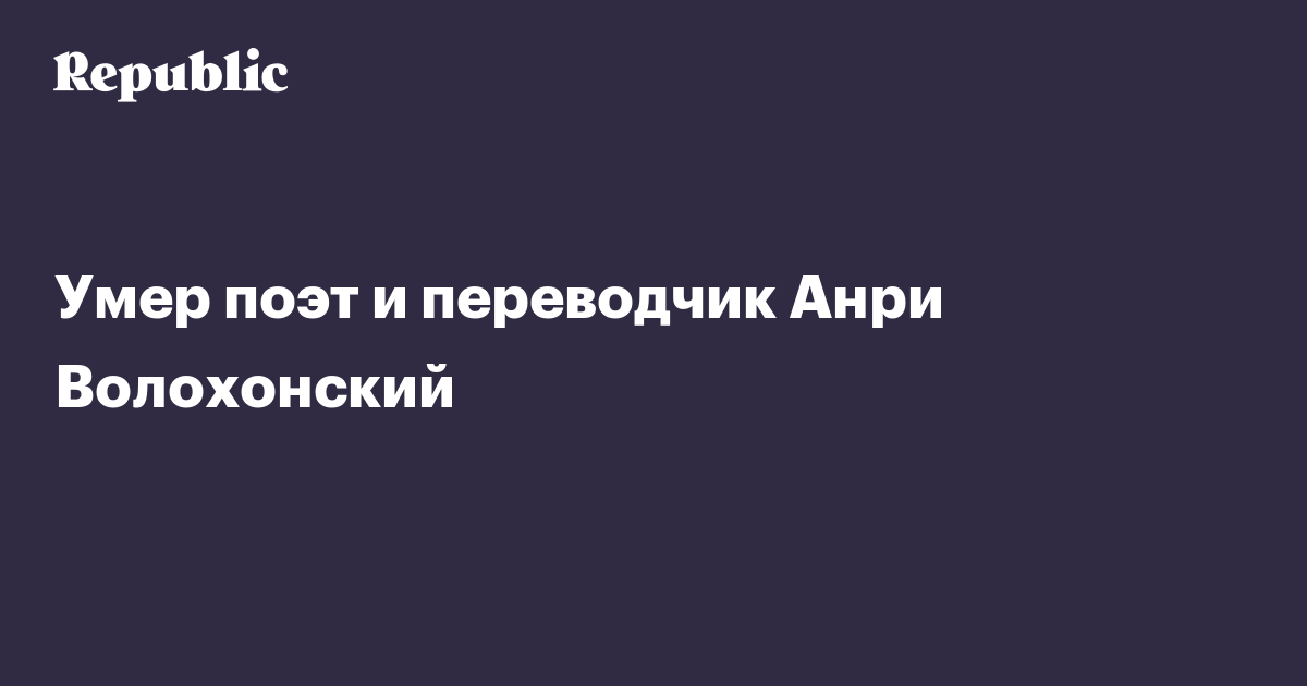 Поэт и переводчик Анри Волохонский умер в возрасте 81 года. Об этом его его друзья сообщили агентству Cursorinfo.