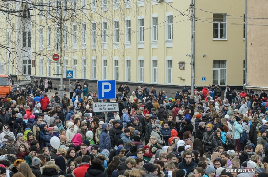 За два дня до проведения акции руководство Сыктывкарского государственного университета разослало руководителям своих институтов и старостам групп приказ об участии студентов и преподавателей в «Дне здоровья» и марафоне «Мы против террора», которые прошли, соответственно, на Стефановской площади и площадке перед Коми государственной академией госслужбы и управления.