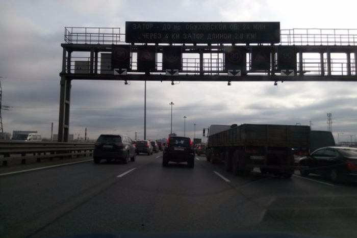 По данным ФКУ ДСТО «Санкт-Петербург», на участке от Софийской улицы до проспекта Обуховской обороны закрыты для движения две полосы.