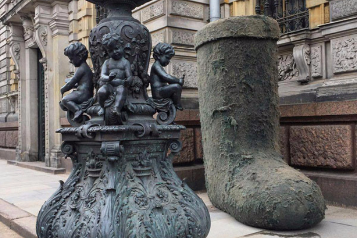 У фасада Академии Штиглица в Соляном переулке установили огромный валенок. Открытие объекта приурочили к открытию международной выставки «Две академии: Вильнюс — Петербург». Автор — петербургская художник Валерия Лошак.