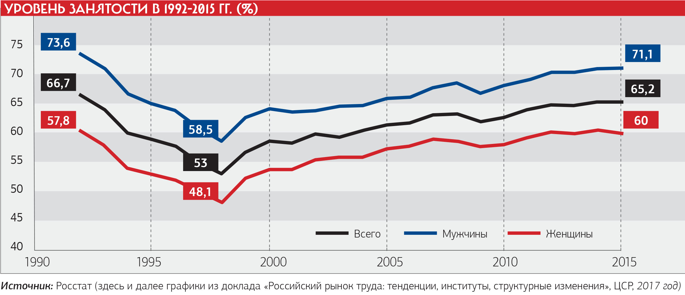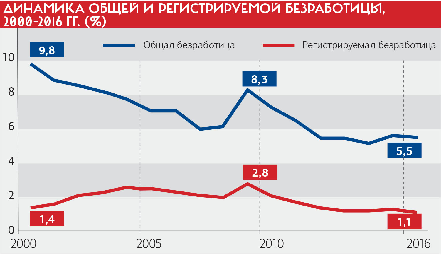 В последнем предложении видится скрытое предположение: после кризиса 2015–2016 годов дальнейшее развитие рынка труда пойдет не так, как раньше, и безработица в стране, где многие десятилетия потрачены на то, чтобы ее не было, таки появится. А уж хорошо это или плохо — вопрос к политикам. Что лучше — 30% бедных при 65% среднеобеспеченных или 95% небогатых при отсутствии бедных?