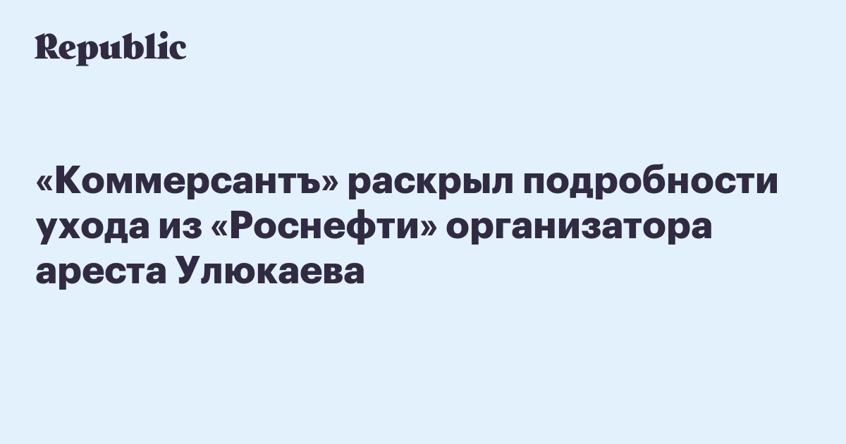 «Коммерсантъ» раскрыл подробности ухода из «Роснефти» организатора ареста Улюкаева