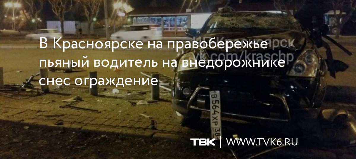 В Красноярске на правобережье пьяный водитель на внедорожнике снес ограждение