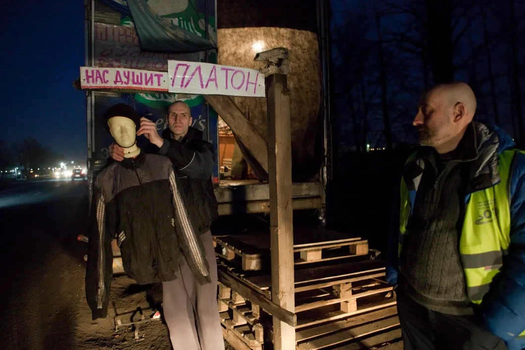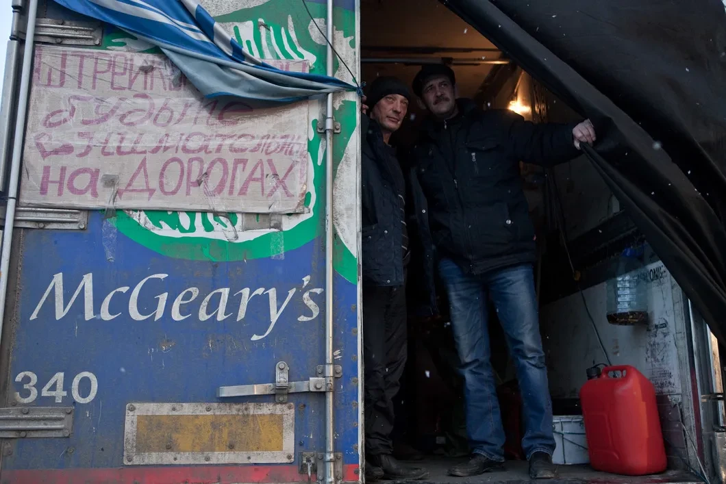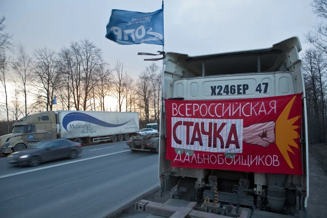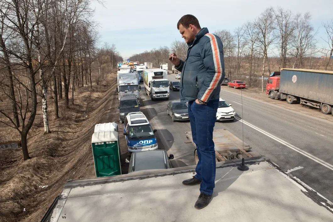 Стоянка бастующих дальнобойщиков на Московском шоссе, в районе поселка Шушары под Питером