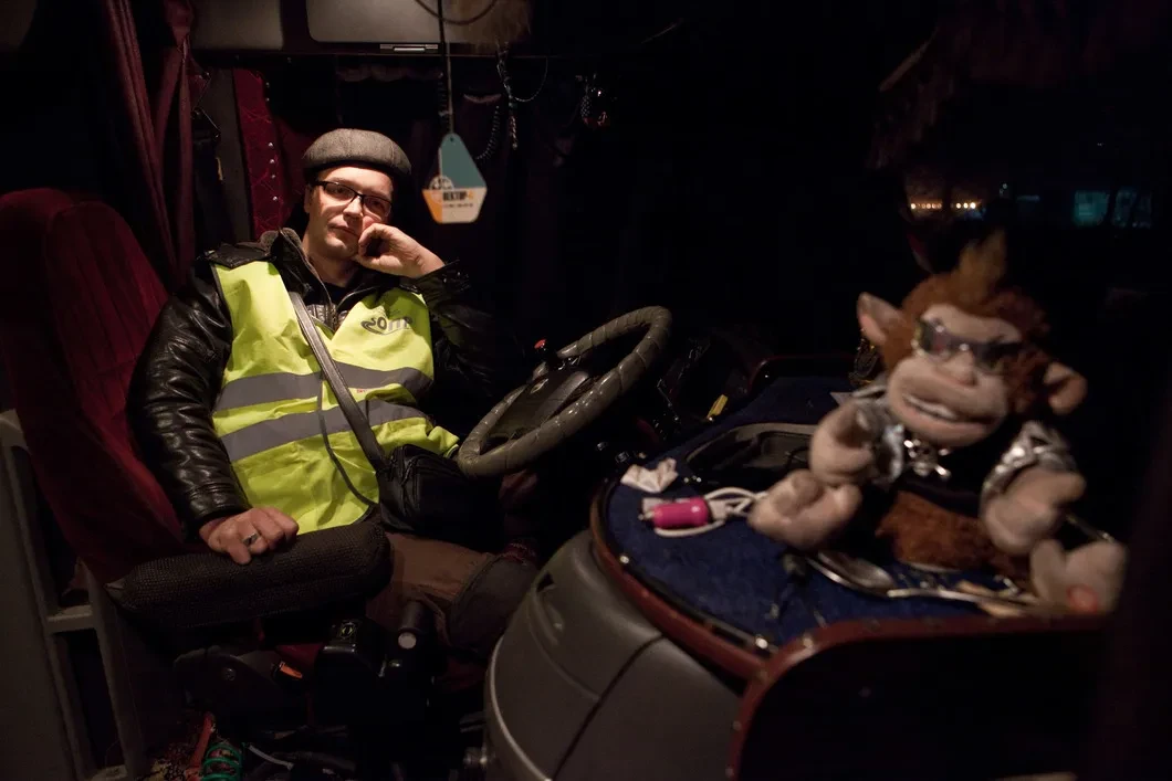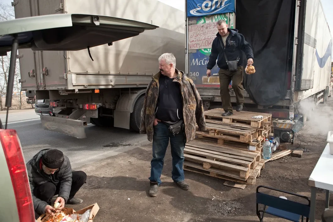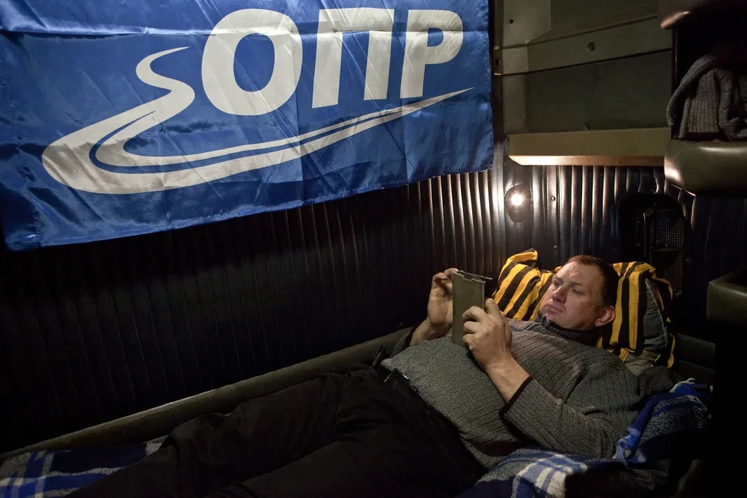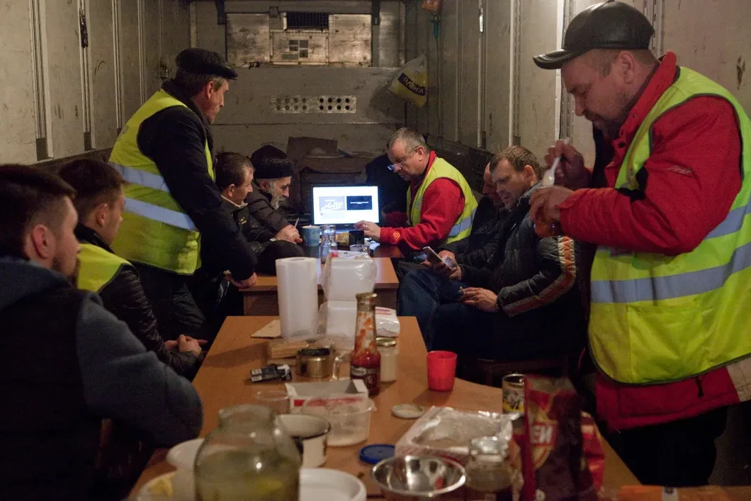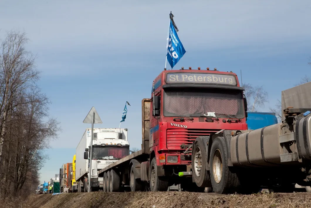 Стоянка бастующих дальнобойщиков на Московском шоссе, в районе поселка Шушары под Питером