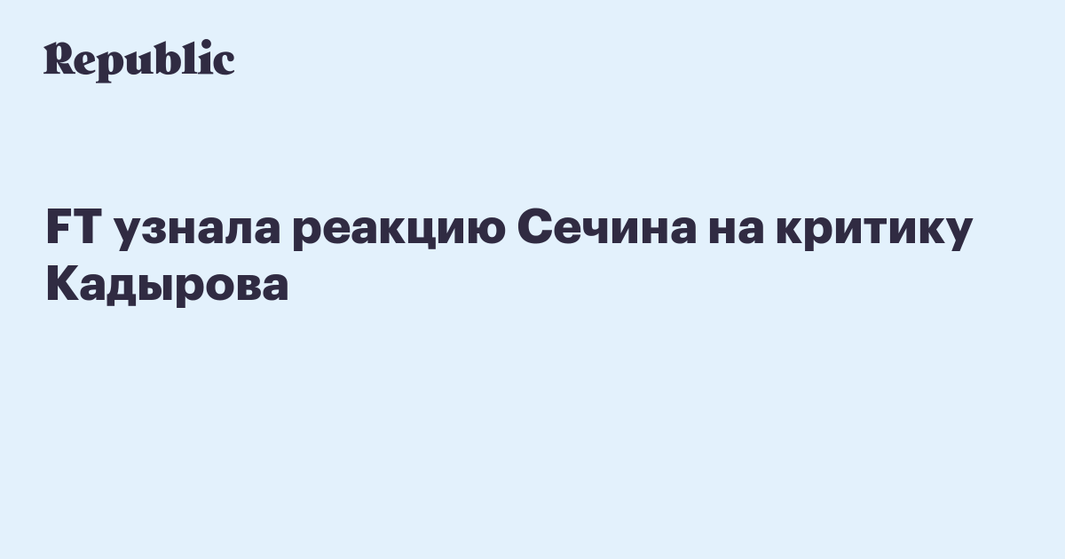 «Он [Кадыров] довольно страшный парень, но и Игорь Иванович [Сечин] тоже. Игорь Иванович – не тот человек, которого могут запугать слова Кадырова», – сказал FT собеседник, знакомый с ходом переговоров о продаже чеченских активов «Роснефти».