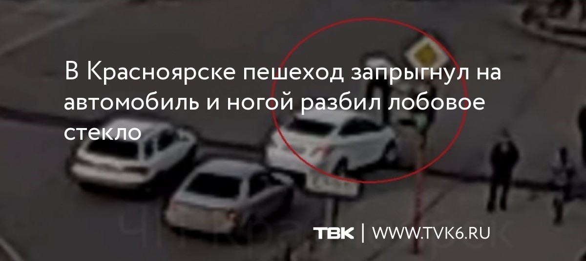 В Красноярске пешеход запрыгнул на автомобиль и ногой разбил лобовое стекло