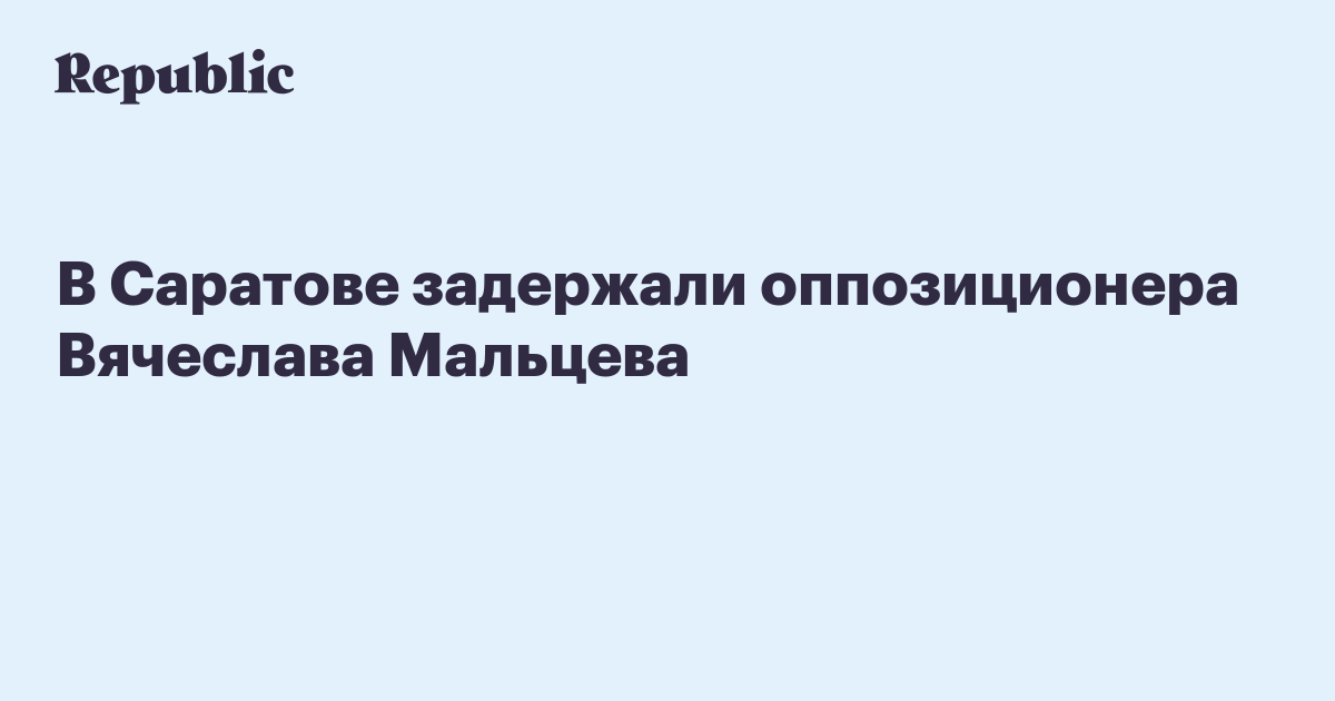 Полиция Саратова задержала оппозиционера Вячеслава Мальцева, сообщает издание «Свободные новости».