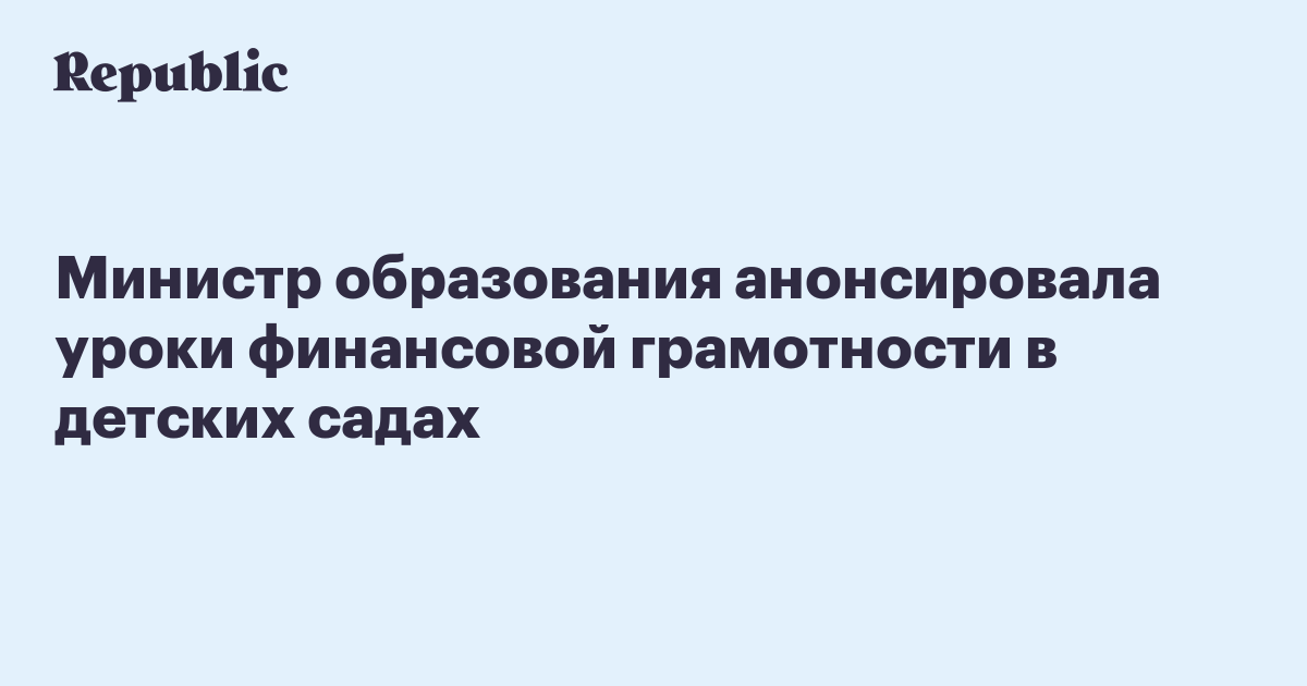 Министр образования анонсировала уроки финансовой грамотности в детских садах