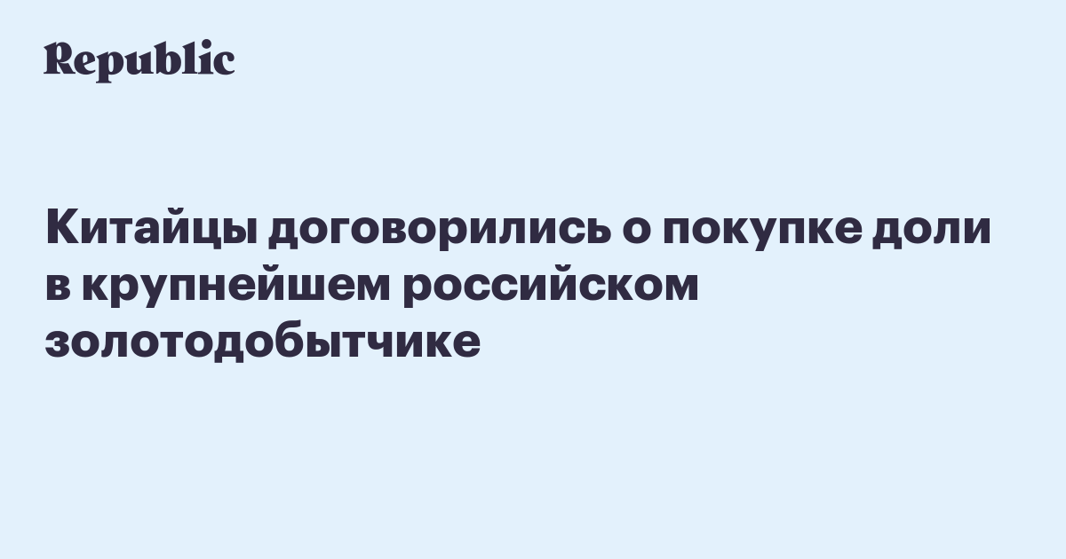 Китайцы договорились о покупке доли в крупнейшем российском золотодобытчике