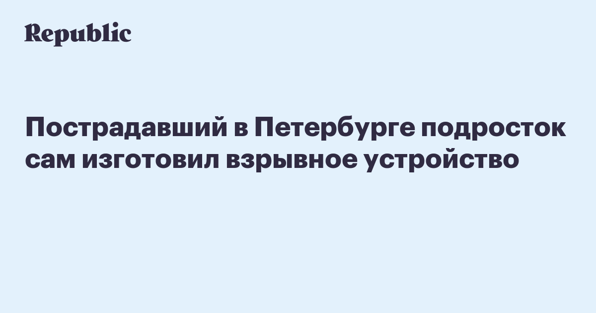 Пострадавший в Петербурге подросток сам изготовил взрывное устройство