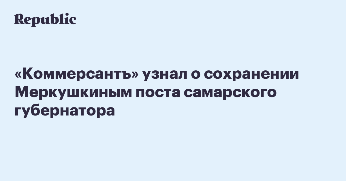 «Коммерсантъ» узнал о сохранении Меркушкиным поста самарского губернатора
