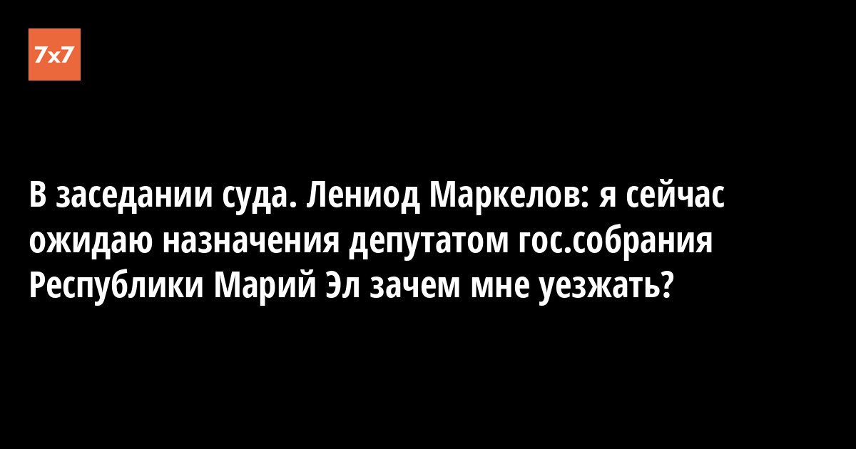 В заседании суда. Лениод Маркелов: я сейчас ожидаю назначения депутатом гос.собрания Республики Марий Эл зачем мне уезжать?