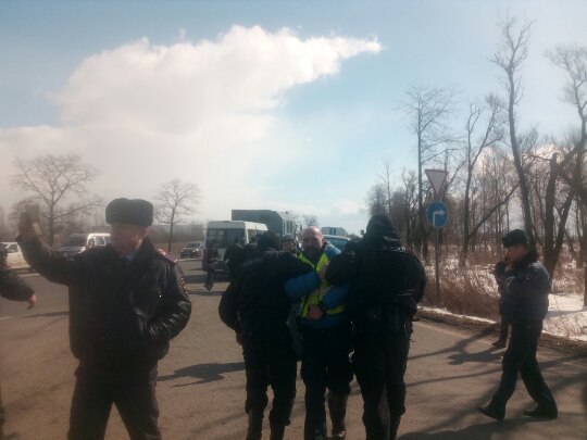 По обновленным данным, на Московском шоссе в районе лагеря дальнобойщиков задержали восьмерых участников протестного заезда. Среди задержанных находится Андрей Бажутин, лидер петербургских дальнобойщиков.