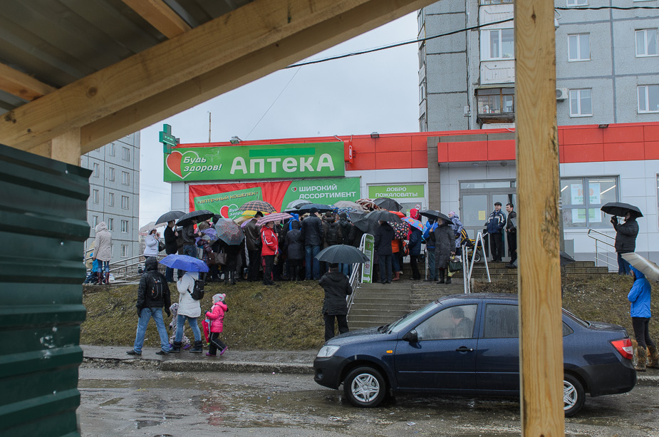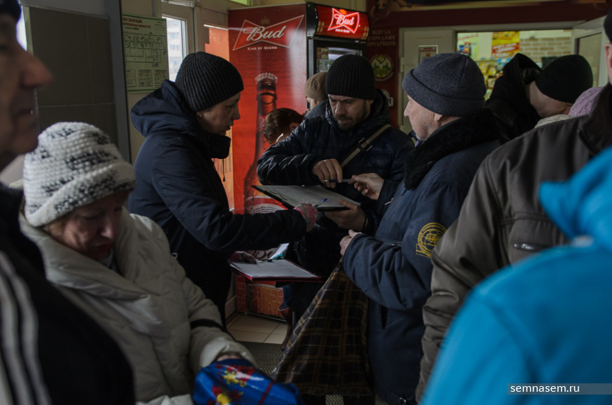 Около 12:00 у магазина «Магнит», рядом с местом строительства парковки, собралось примерно 50 человек. Члены КПРФ приглашали жителей микрорайона Орбита зайти в холл магазина, где они могли поставить подписи.