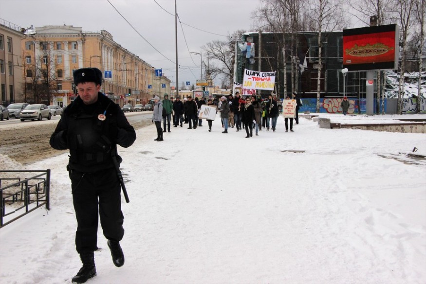 После митинга состоялось шествие по центру Петрозаводска, лекция о проблемах эксплуатации цирковых животных и показ документального фильма о взаимоотношениях человека и природы.