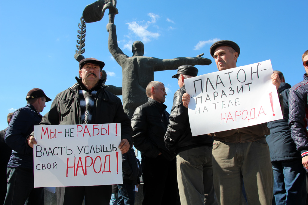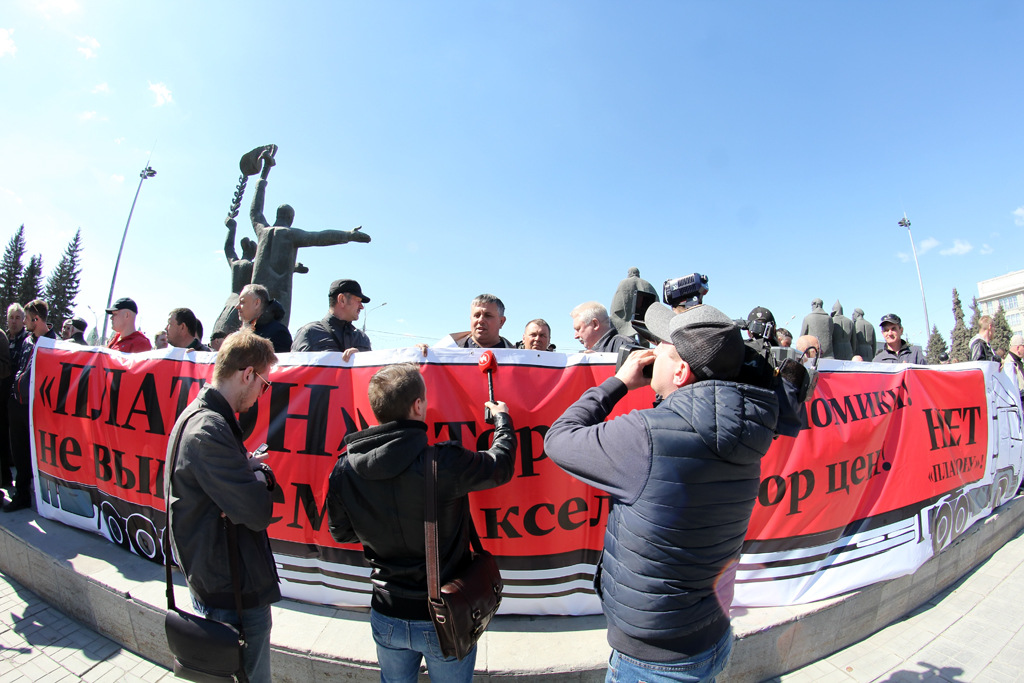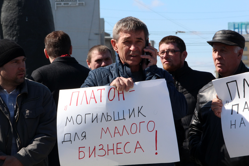 «Вот у него было три машины, не осталось ни одной, — показывает на соратника дальнобойщик Александр Устамчук. — У многих, как у меня, например, осталось по машине. Это за два года после введения „Платона“. Если взять расценки десятилетней давности на перевозки по постоянному маршруту Новосибирск-Екатеринбург-Новосибрск, то за 10 лет они не поменялись. Только к этому добавились налоги, акцизы, повысили транспортный налог, теперь и „Платон“. Если раньше мы платили 9–10 тыс. транспортного за машину, сегодня я плачу 39 тыс. рублей».
