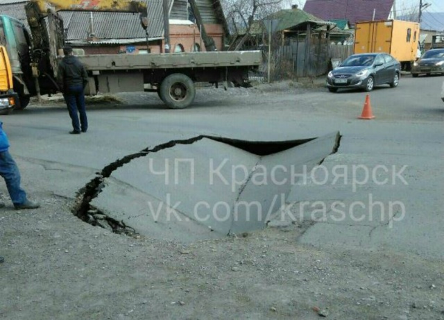 Глубина провала около 2 м. Дорога была полностью перекрыта для движения.