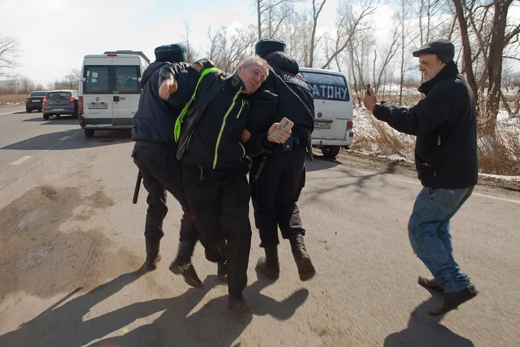 Под крики «позор», «произвол» и «беспредел» омоновцы усадили в машины семь человек (в том числе – Андрея Бажутина) и доставили их в ОМВД Пушкинского района. По рассказам дальнобойщиков, там тоже долго не могли придумать статью для задержанных.