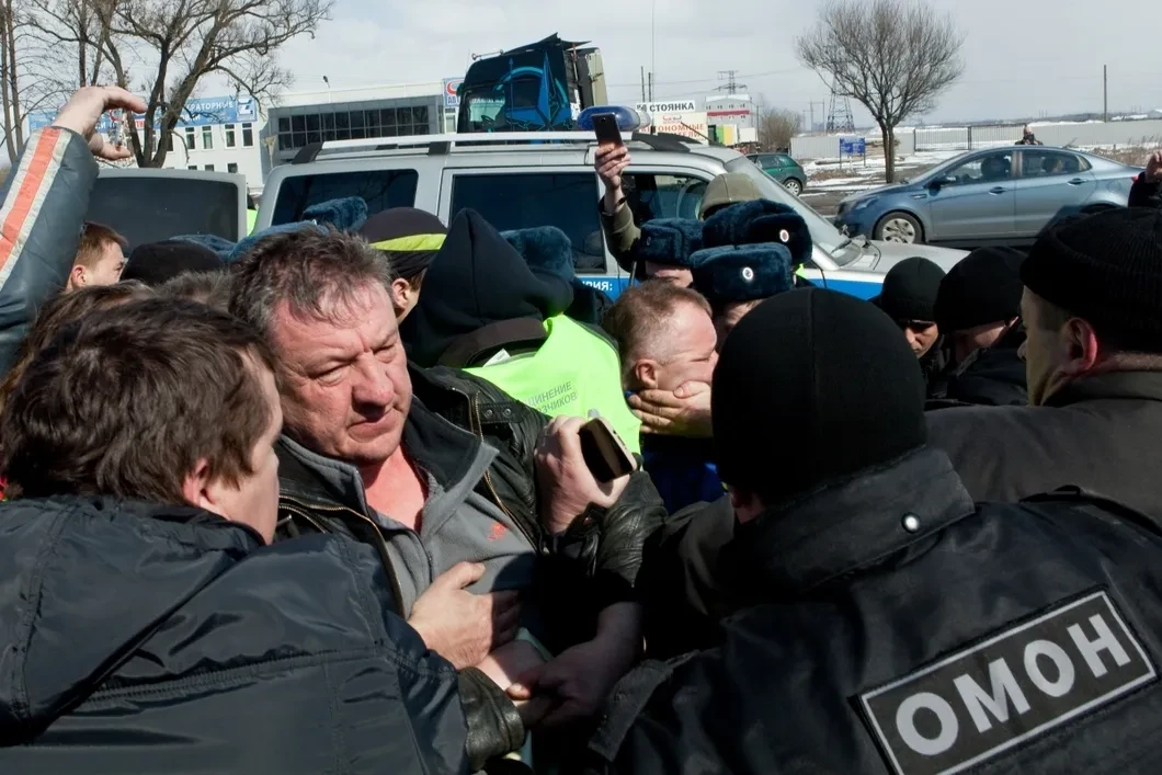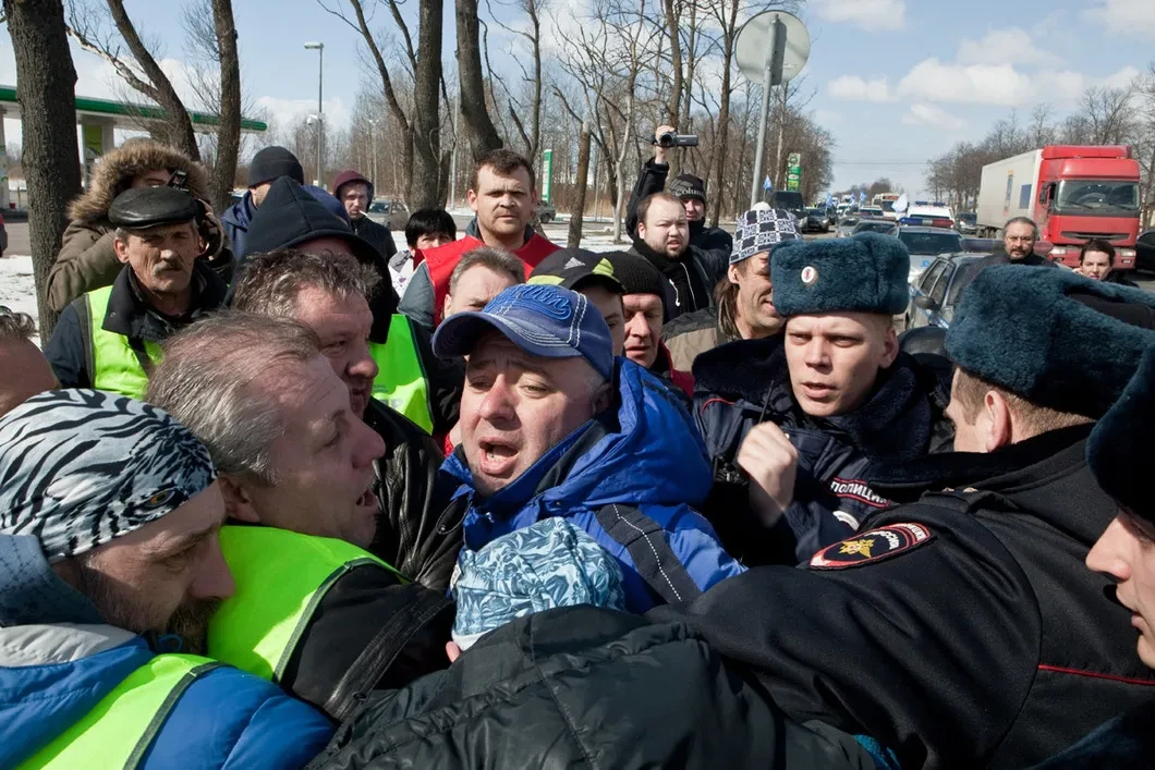 – Но едва мы стартовали, нам сразу стали препятствовать. Мы не проехали даже километра, как полицейские автомобили начали блокировать движение колонны, – говорит председатель Объединения перевозчиков России (ОПР) Андрей Бажутин. – Тогда я вышел из салона, подошел к полковнику, который координировал действия ОМОНа, и спросил: почему мы не можем продолжать движение? Он ответил: «В отделе вам объяснят – сейчас мы вас задержим».