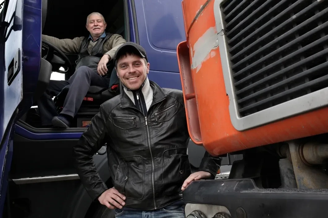 Некоторые дальнобойщики приезжают целыми династиями. Например, Николай Белоотченко (за рулем 45 лет) со своим сыном Павлом.