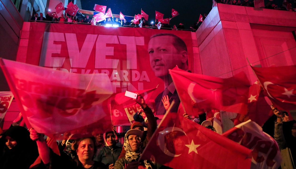 Фото: Huseyin Aldemir / Reuters / Scanpix / LETA Сторонники Эрдогана празднуют в Стамбуле одобрение конституционной реформы, 16 апреля 2017 года