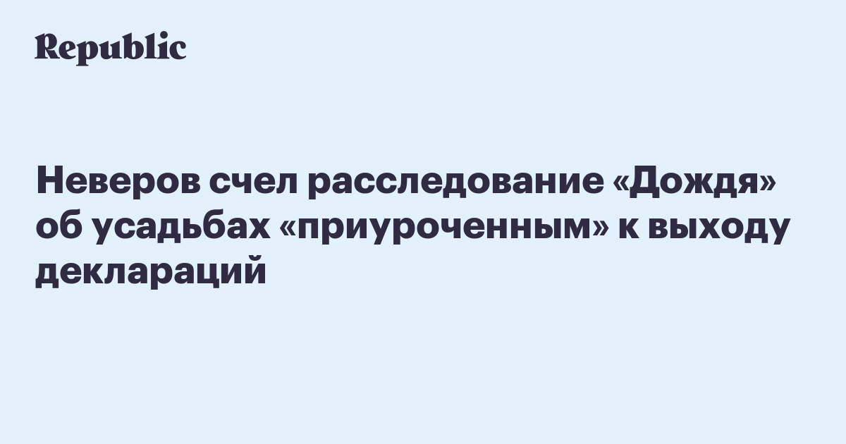 Неверов счел расследование «Дождя» об усадьбах «приуроченным» к выходу деклараций
