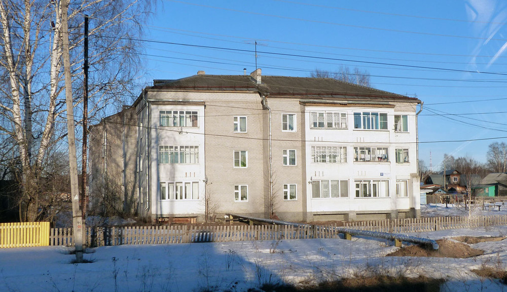 Этот многоквартирный дом начинали строить ещё в период желания воплотить мечту о центральной канализационной системе, которая должна была соединить поселки Подосиновец и Демьяново. Люди мечтали, чтобы жидкие отходы стекали на очистные сооружения в Демьяново. Прошло время, зарытые до самого Пожара (деревня с таким названием) трубы были выкопаны и проданы, очистные в Демьяново перестали очищать и стоки даже самого Демьяново стали спускаться в реку Юг неочищенными...