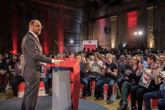 «Из-за того что Шульц — человек со стороны, у него нет влиятельных врагов в партии и у него развязаны руки, — объясняет Николай Хауфлер. — Вообще, у социал-демократов сейчас сумасшедшая энергетика, Шульц — их надежда и давно ожидаемый спаситель. За Меркель многие будут голосовать из рационального расчета. За Шульца будут голосовать сердцем». Понимая, что образ «человека из Брюсселя» при всех европейских симпатиях немцев не тот, на котором можно собрать политические дивиденды, Шульц строит свою предвыборную программу на образе «человека из народа», губернатора маленького городка, бросившего вызов берлинским бонзам. Основная тема его выступлений — справедливость. «Шульц — опасный соперник, потому что он безжалостный популист, — считает собеседник „Медузы“ в ХДС. — Когда он говорит: „я понимаю вас, вам плохо живется“, это задевает нужные струны в сердцах людей».