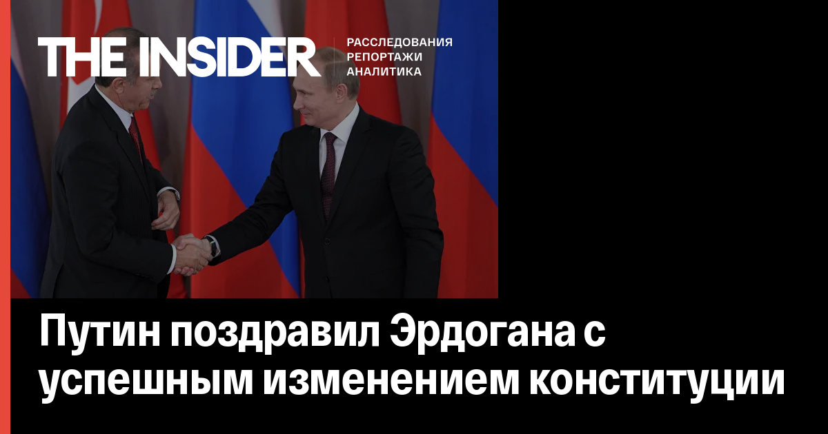 Владимир Путин поздравил Реджепа Тайипа Эрдогана с успешным проведением референдума по внесению изменений в Конституцию Турции. Об этом сообщается на сайте Кремля.
