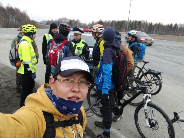 Фото: фото с Томского велофорума Томские велосипедисты, много лет безуспешно боровшиеся за строительство в Томске и в Томском районе велодорожек, тренируются на обычных трассах. В воскресенье 16 апреля, во время очередного тренировочного выезда, недалеко от Зоркальцевского кольца, их остановила патрульная машина. Основная претензия инспектора: что вы делаете на трассе? После десяти минут разбирательств и звонка начальству, велосипедисты были отпущены.