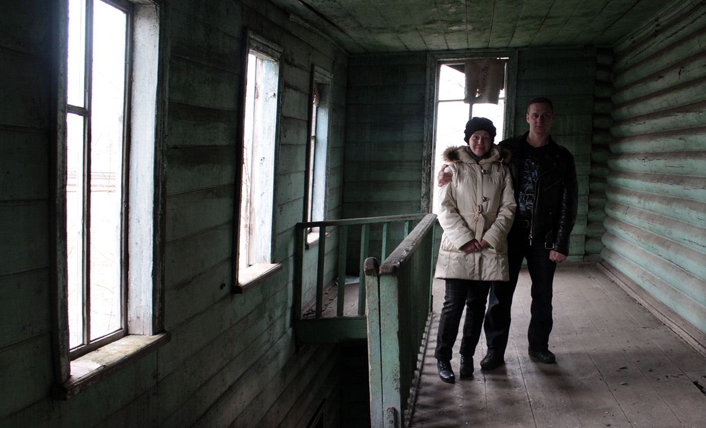 Алла Ледовских выросла в этом старинном доме на улице Станционной. Жили весело, вспоминает она, хотя бытовых неудобств было много: в туалет жильцы ходили на улицу, а за водой бегали к колонке. Со временем дом ветшал: стены покосились, пол просел, снаружи древесину поел жук. Ступени лестницы, ведущей на второй этаж, сгнили, межкомнатные перегородки поразила плесень, а просторный двор зарос кустами. Теперь в доме никто не живет. При переезде жильцы побросали все ненужное — диваны, старые тряпки и иконы.