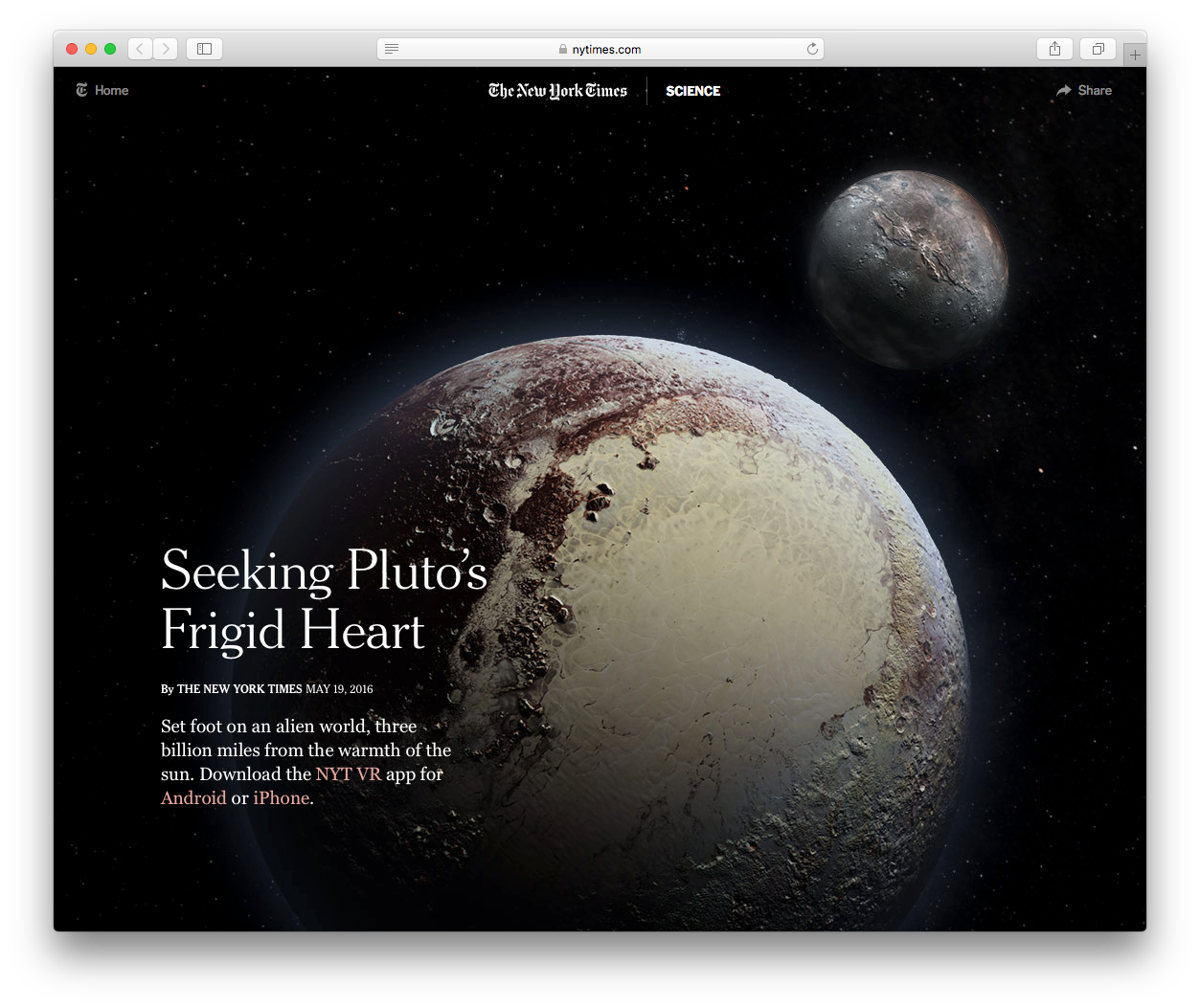 Грэм Робертс: Я работаю в The New York Times уже лет десять — и все это время занят визуальным сторителлингом и придумываю, как это можно развивать. В 2014-м я съездил в Ванкувер на конференцию Siggraph, где обсуждают производство фильмов с точки зрения технологий. Я там и раньше бывал, но в том году все говорили только о виртуальной реальности. Ну и мне стало интересно, можно ли эту технологию использовать в журналистике.