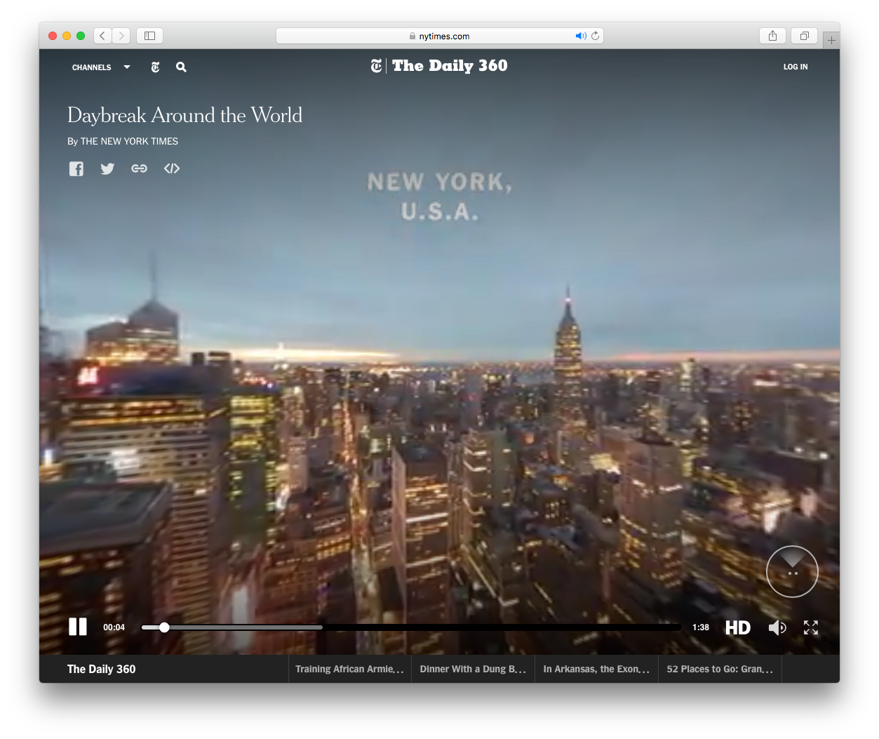 ГР: Да, это верно. Это только начало, еще ничего не случилось. На данный момент это минимально жизнеспособный продукт. Мы впервые можем делать такое для массовой аудитории, а не просто для пары людей на выставке. Мы можем делать это в том масштабе, в котором The New York Times позволяет. И понятно, что пока что у технологии масса проблем. Все они связаны со сложностью и дороговизной. Особенно если вы хотите достичь того качества видео, к которому люди привыкли. Для VR нужно в три-пять раз более высокое разрешение, чтобы у людей возникло впечатление просмотра видео в HD-качестве. В действительности мы видим только 30% видео зараз. Из-за этого возникают другие проблемы. Одна из самых крупных — распространение, то есть как мы доносим это до людей. Потоковое вещание просто не подходит для видео с качеством 6К. А это то качество разрешения, которое необходимо для эффекта присутствия в виртуальной реальности. Кроме того, сами файлы занимают дикое количество места, и люди не готовы их загружать и не готовы ждать загрузки. Это все решаемые проблемы, просто технология еще на слишком раннем этапе.