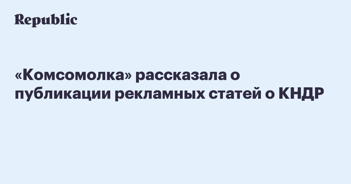 «Комсомолка» рассказала о публикации рекламных статей о КНДР