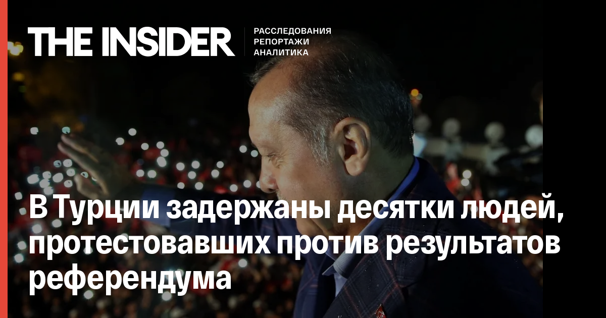 Ранее СМИ сообщали, что турецкая полиция задержала в разных городах страны около 50 человек, участвовавших в акциях протеста против итогов прошедшего в воскресенье конституционного референдума.