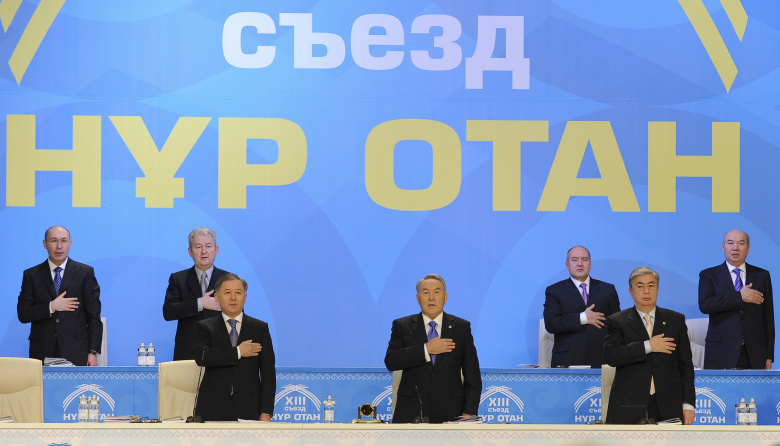Президент Казахстана Нурсултан Назарбаев c членами политической партии «Нур Отан». Фото: Mukhtar Kholdorbekov / Reuters