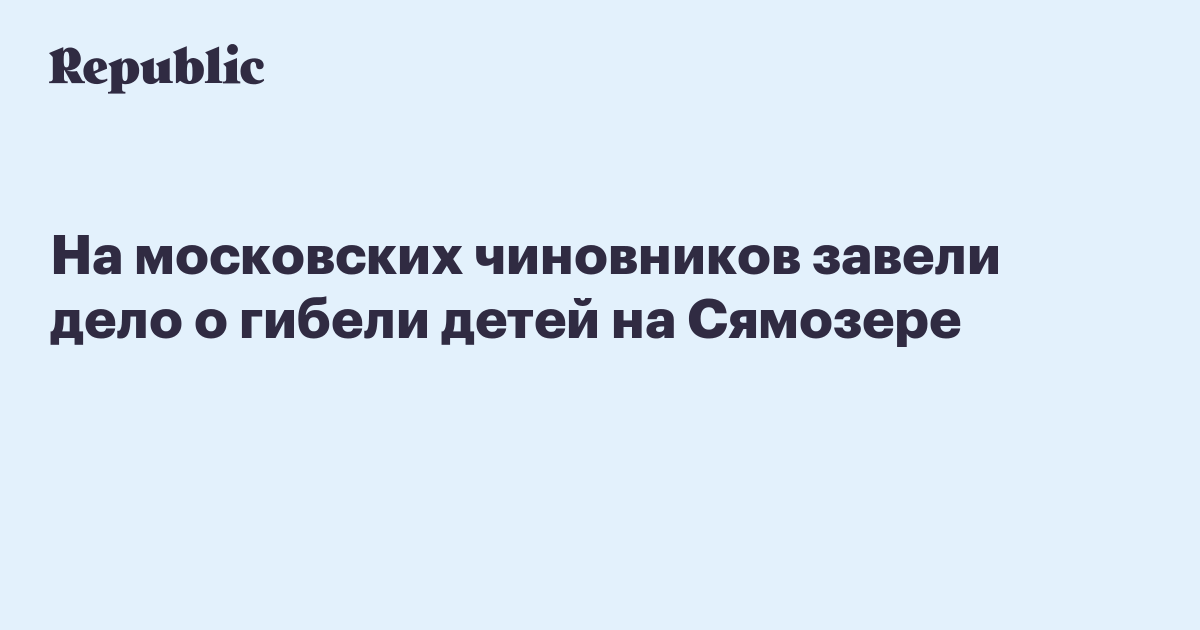 На московских чиновников завели дело о гибели детей на Сямозере