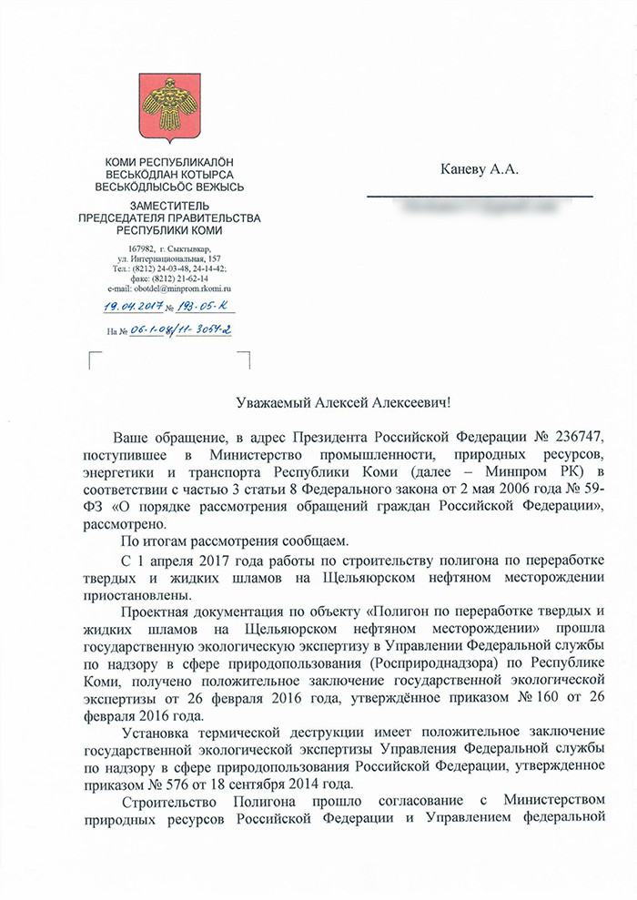 10 апреля депутаты Ижемского района приняли решение о необходимости переноса строительства в место, более отдаленное от населенных пунктов.