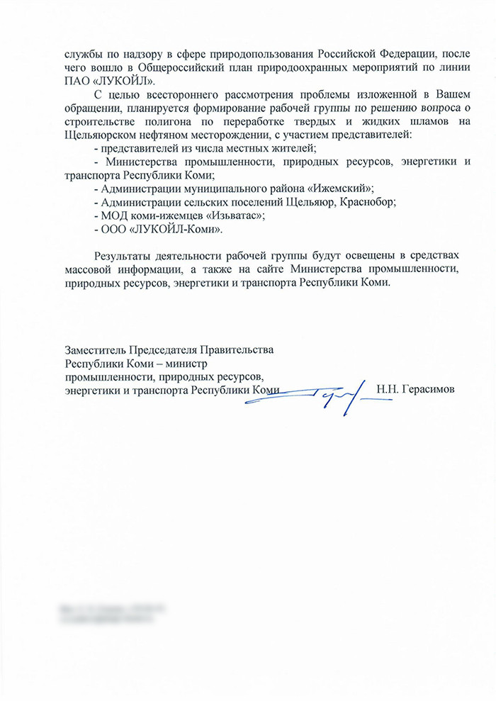 «Все вышеперечисленные организации, кроме представителей из числа местного населения, уже участвовали в обсуждениях и принятии решений по данному полигону, и благодаря им местное население близлежащих поселений сегодня имеет проблему строительства нефтепомойки у себя под боком».
