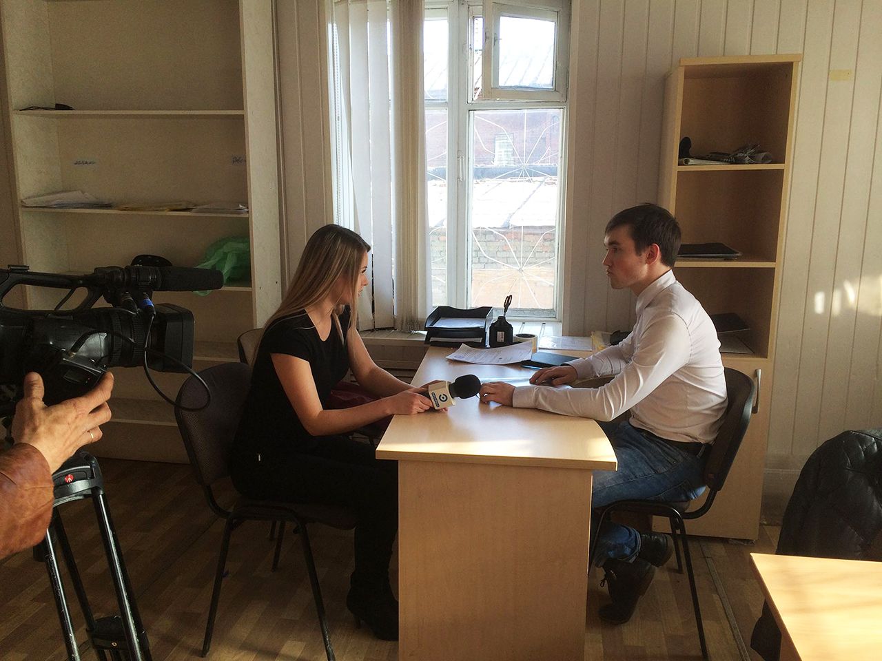 Фото: Олег Шарипков Офис «Ауреи» в Пензе. Человек, представившийся Эрнестом Ивановым из Чебоксар (справа), общается с журналистами. 11 апреля 2016 года