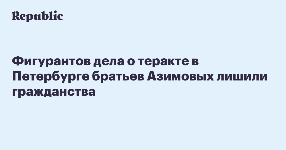 Фигурантов дела о теракте в Петербурге братьев Азимовых лишили гражданства