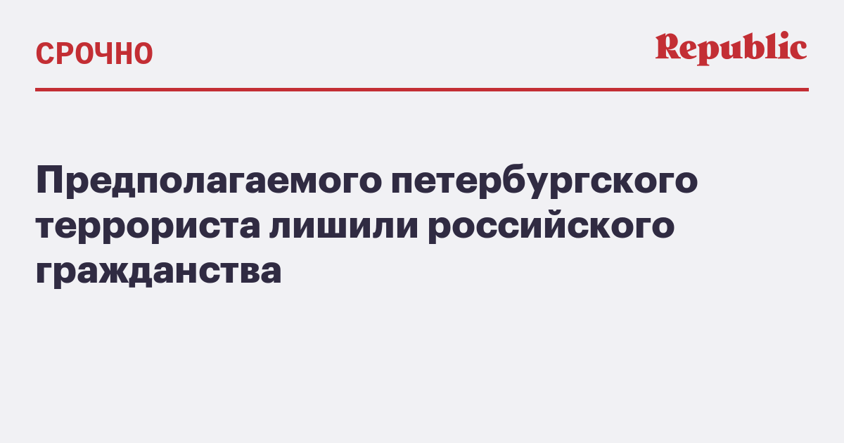 Предполагаемого террориста, взорвавшегося в петербургском метро, Акбаржона Джалилова лишили российского гражданства. Об этом сообщает МВД.