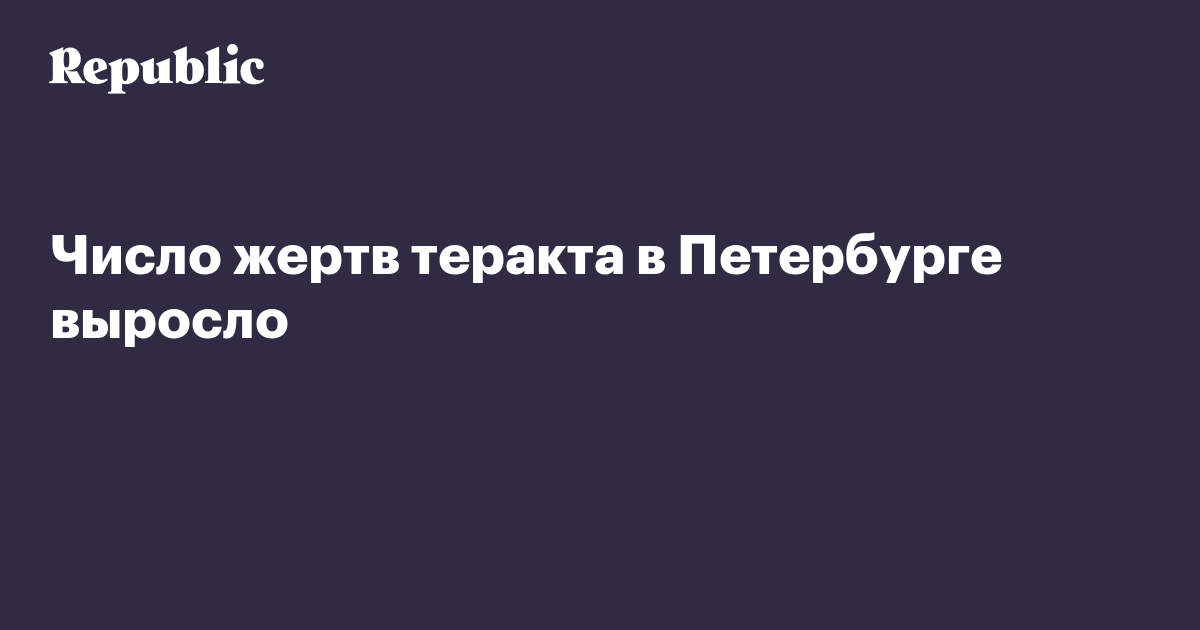 В больнице Петербурга скончалась еще одна пострадавшая в результате теракта в метро. Об этом сообщает вице-губернатор города Анна Митянина.