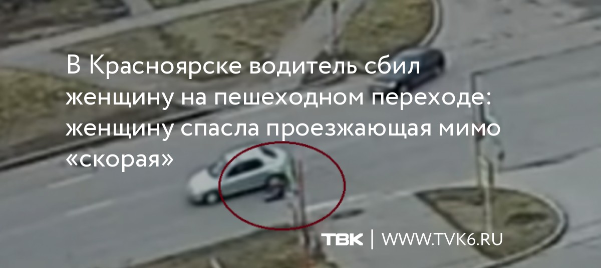 В Красноярске водитель сбил женщину на пешеходном переходе: женщину спасла проезжающая мимо «скорая»