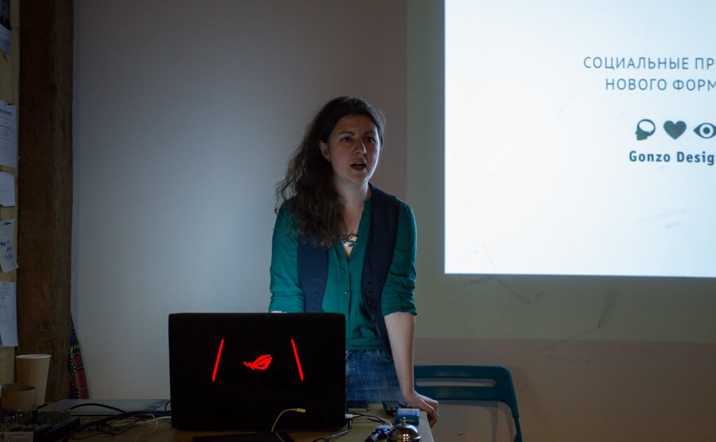 На встрече выступила сооснователь студии «Гонзо дизайн», фотограф и дизайнер Ксения Диодорова.