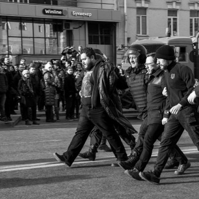 В тот день я дважды убедился, что демократия не работает. Один раз люди проголосовали, что после того, как мы дошли до Кремля, нужно идти обратно на Пушку, хотя я был против, но пришлось идти со всеми. Другой раз люди проголосовали за то, что нужно не стоять на тротуаре, а прыгать в самый замес. Хотя я снова был против, пришлось пойти со всеми.