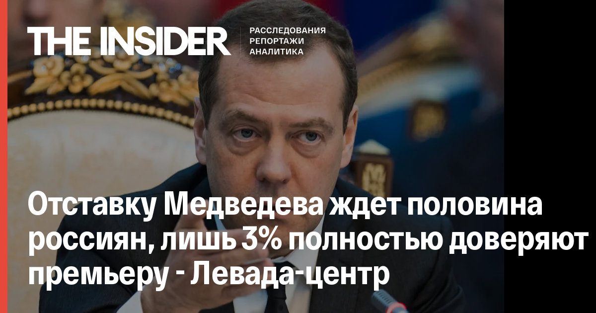 Отставку Медведева ждет половина россиян, лишь 3% полностью доверяют премьеру - Левада-центр